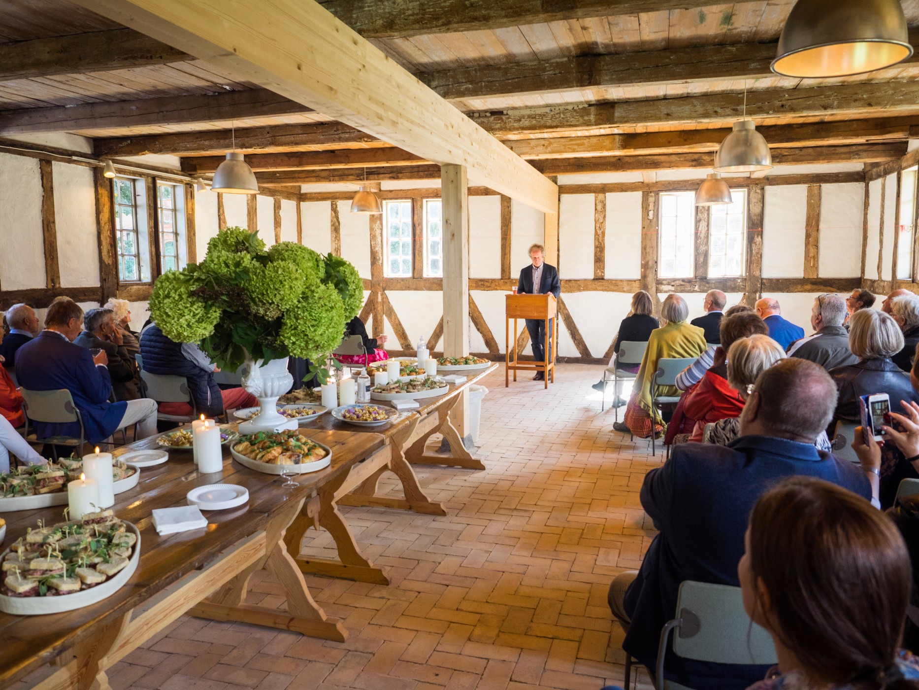 På Sanderumgaard bidrager omgivelserne aktivt til oplevelsen. De historiske bygninger og de naturskønne rammer skaber ro, inspiration og plads til fordybelse. Det gør stedet ideelt til B2B-arrangementer, hvor formålet er at styrke relationer og skabe dialog på et mere personligt niveau.